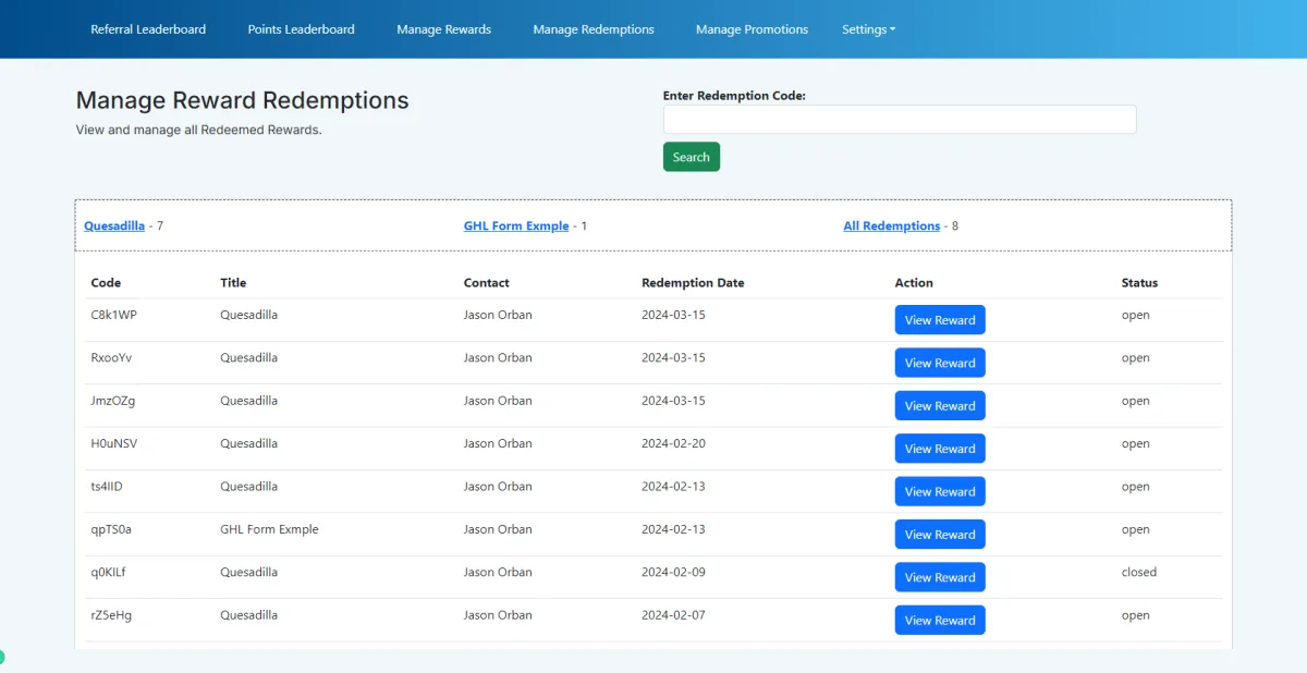 Each voucher or redemption item has a unique voucher code which you can track using our system, or simply scan the QR code on the voucher and process the redemption from any mobile device, or tablet.